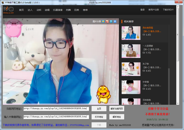 你也喜欢YY神曲频道,想要下载其中的好歌曲,也以使用YY神曲下载工具,能够快速获取YY神曲的下载地址,再用下载器下载到电脑上。