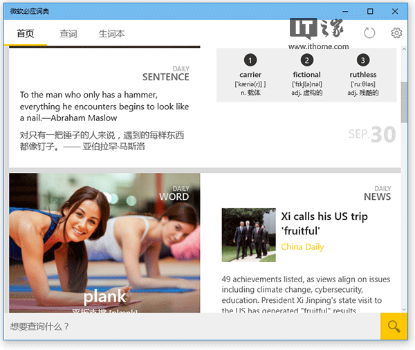 微软必应词典win10版是微软转为win10系统打造的一个uwp。微软必应词典win10版支持支持本地词库和网络查询,随时随地能够查单词 ,必应词典win10版配合生词本功能,单词记忆更方便。