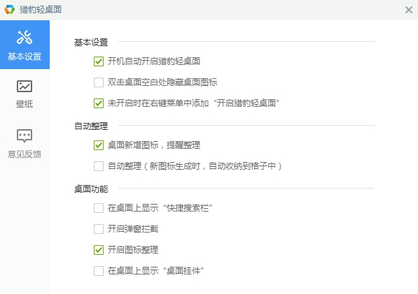 猎豹轻桌面是猎豹团队推出的一款桌面整理软件,这款软件不仅可以帮你管理桌面图标美化桌面,让你的桌面一键变整洁,而且软件还具有弹窗拦截功能,不管是软件弹窗还是网页弹窗都让其无所遁形。如果你觉得你的桌面太乱了需要整理一下,可以试试这款软件。