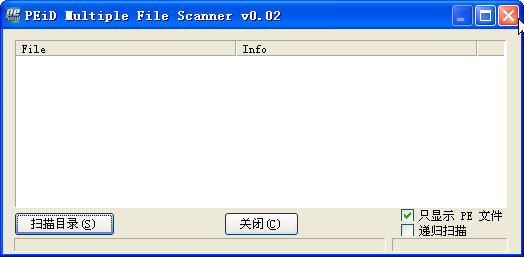 多文件扫描模块:可同时扫描多个文档。选择“只显示PE文件”可以过滤非PE文档;选择“递归扫描”可扫描所有文档,包括子目录。