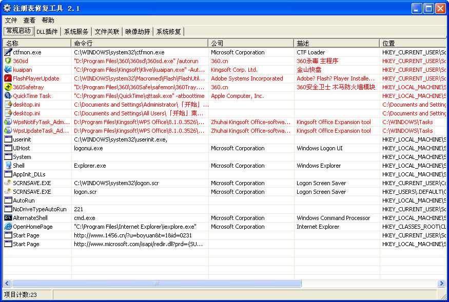 是一款功能非常丰富的注册表修复软件,它能够让用户对系统启动项,系统所有Win服务进行查看和编辑,对文件关联、DLL插件等进行查看和修复,还能切换字体。