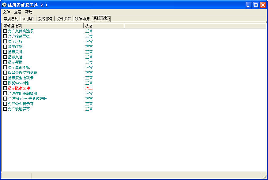 6.系统修复,用于修复一些常见的系统功能。某些项可能需要重启或注销才能生效。
