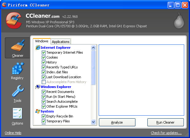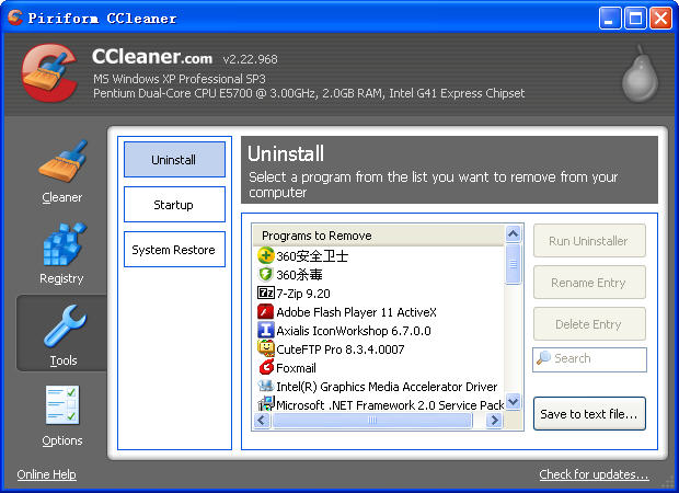 CCleaner是一款很不错的、免费的系统优化和隐私保护工具。CCleaner的主要用来清除Windows系统不再使用的垃圾文件,以腾出更多硬盘空间。它的另一大功能是清除使用者的上网记录。CCleaner的体积小,运行速度极快,可以对临时文件夹、历史记录、回收站等进行垃圾清理,并可对注册表进行垃圾项扫描、清理。附带软件卸载功能。 同时支持IE、Firefox。