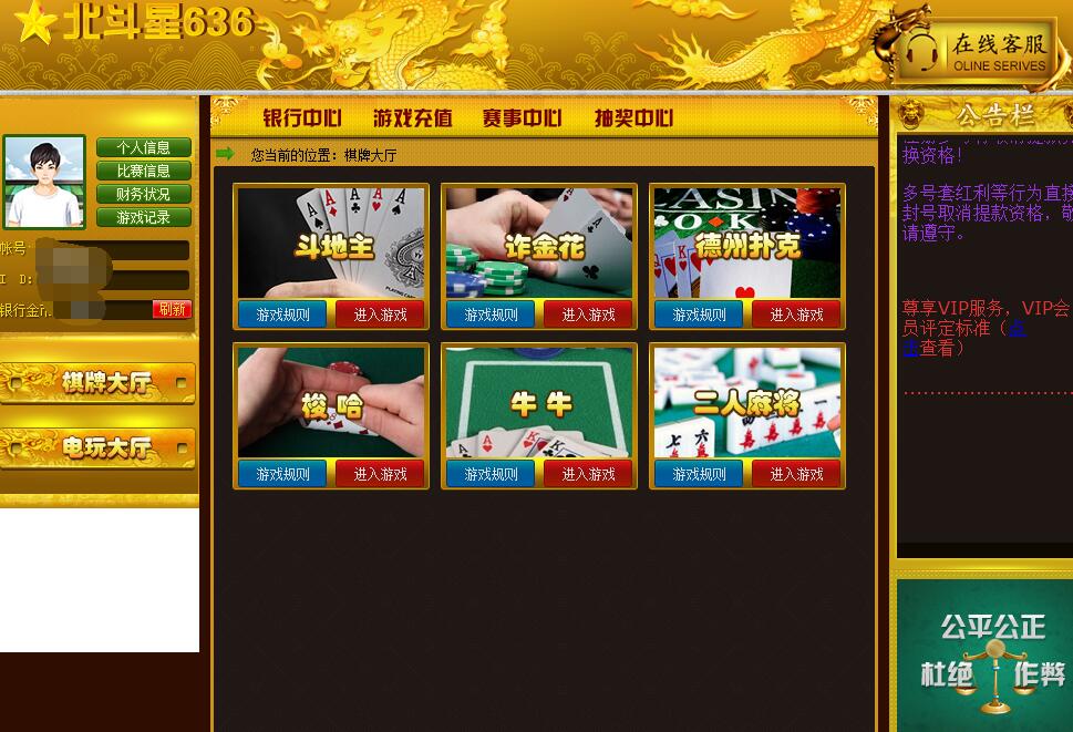 北斗星636棋牌游戏是目前行业领先的棋牌系统,以稳定、公平、内容丰富而著称。 这里的棋牌游戏都是大家经常玩的牌,比如斗地主,升级等,喜欢玩牌的朋友不妨去这个游戏大厅玩玩。