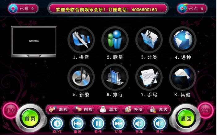 广告插播:点歌界面上留有广告条,可进行广告宣传和消费引导。