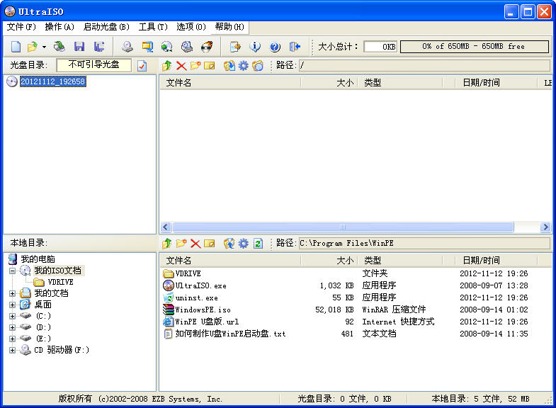 PS:可以使用VDRIVE虚拟光驱加载 WindowsPE.ISO 文件查看光盘的内容。