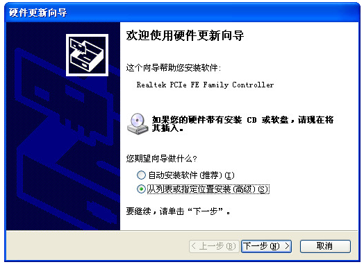 3、弹出下图指示,选择从列表或指定位置安装