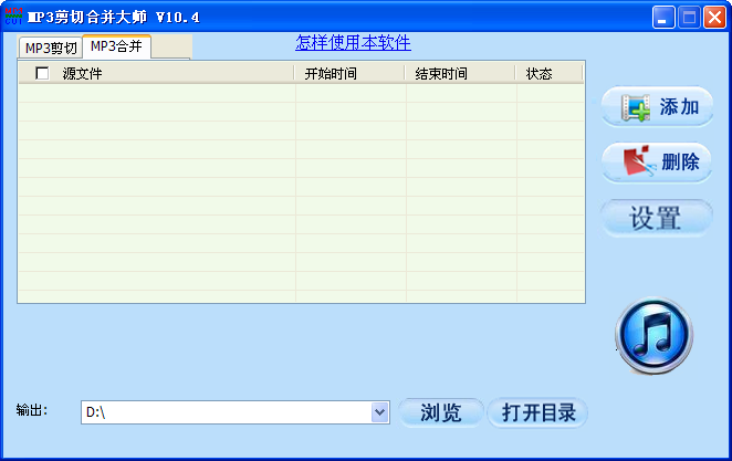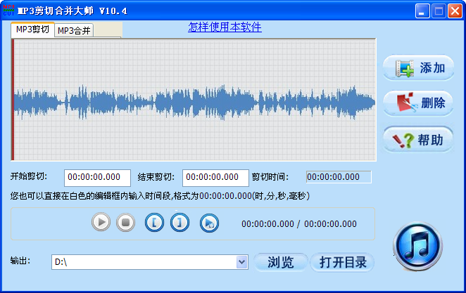 MP3剪切合并大师支持各种MP3,WAV,AAC等音频的串烧,能把多个MP3,WAV, AAC等音频文件合并成一个文件。