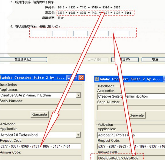 打开photoshop,选择电话激活,把第二段数字复制,打开注册机,在activetion中的phtoshop cs2 9.0在Request Code中粘贴,然后点击Generate,输入到phhotoshop就可以。