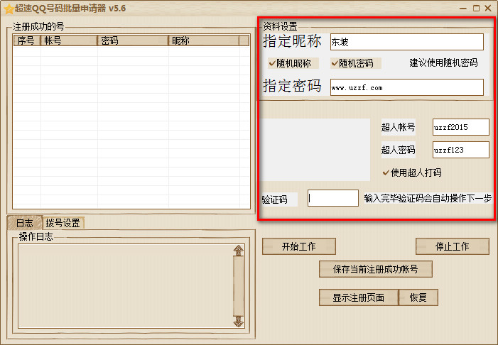 超速QQ号码批量申请器是一款可以帮助用户自动QQ申请器号码的软件,该软件原理就是以后台模拟人工方式提交申请QQ号码,自动输入验证码等相应的验证条件,从而达到成功QQ申请器目的,使用非常简单,用户只需填写申请QQ的一些基本信息即可提交申请。