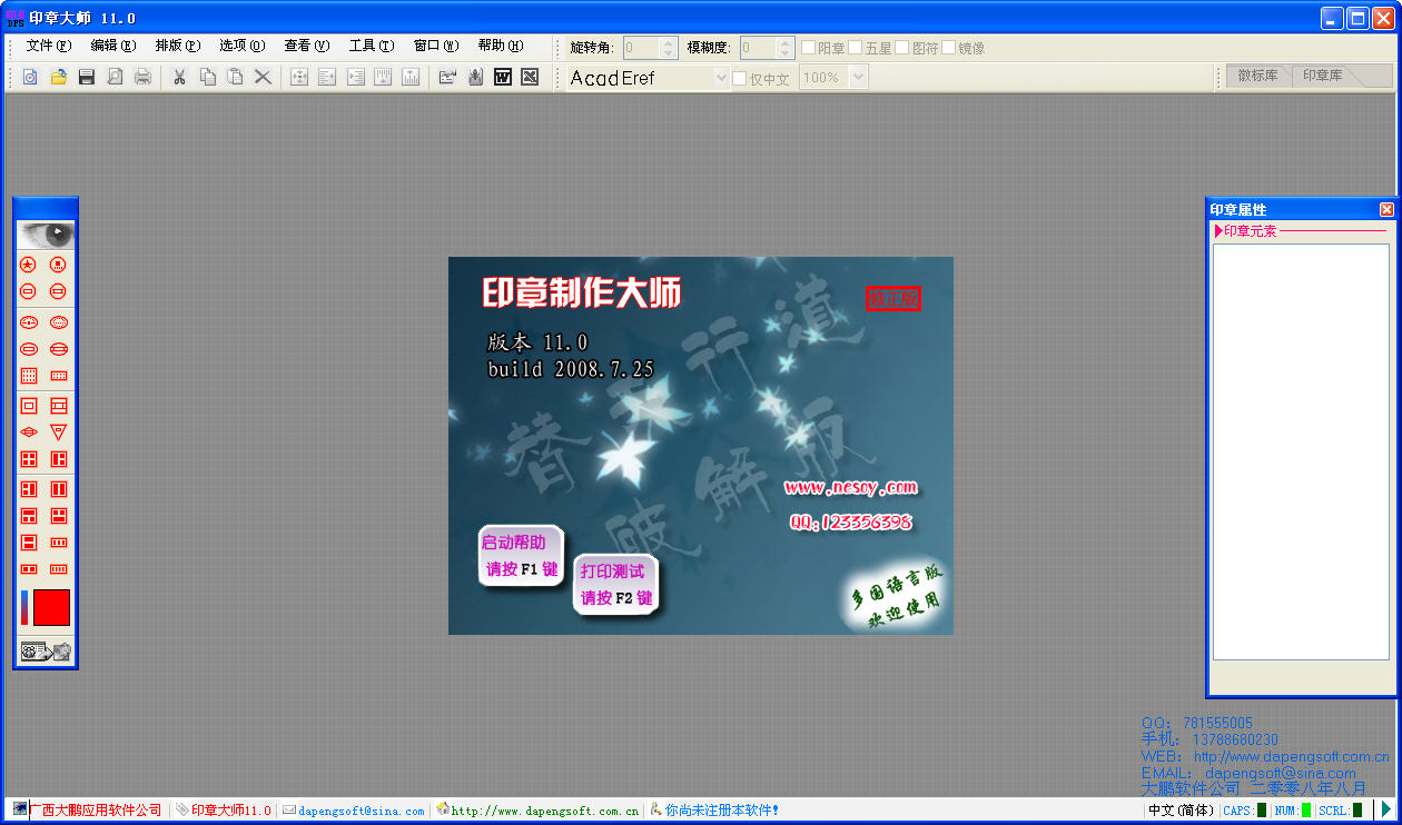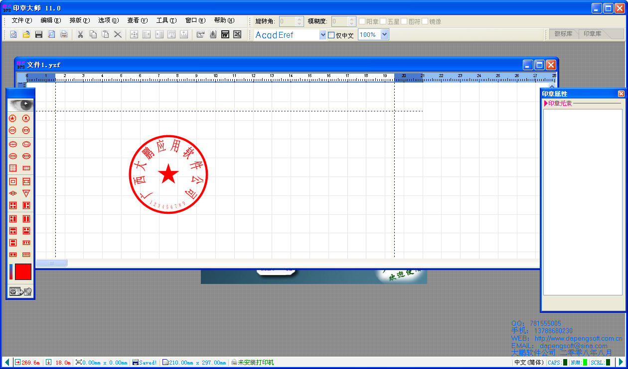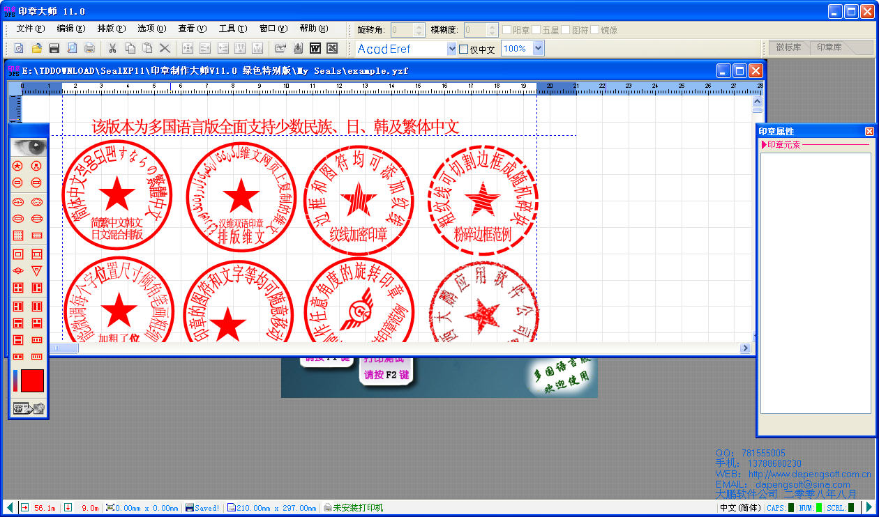 一款方便的制作各种专业级印章的软件。功能包括:艺术印章、公章、私章、阳章、阴章等形式,可以将多个不同效果的印章组合成复杂印章。支持各种打印机输出
