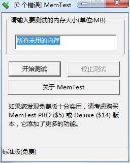 要使用Memtest检测内存,为了尽可能地提高检测结果的准确性,我们建议你在准备长时间不使用电脑时进行检测 1.检测前请先关闭系统中使用的所有应用程序,否则应用程序所占用的那部分内存将不会被检测到; 2.空格内填写想要测试的容量,如果不填则默认为“所有可用的内存” ; 3.然后在主界面上单击“开始测试”,运行软件。MemTest软件会循环不断的对内存进行检测,直到用户终止程序。如果内存出现任何质量问题,MemTest都会有所提示。