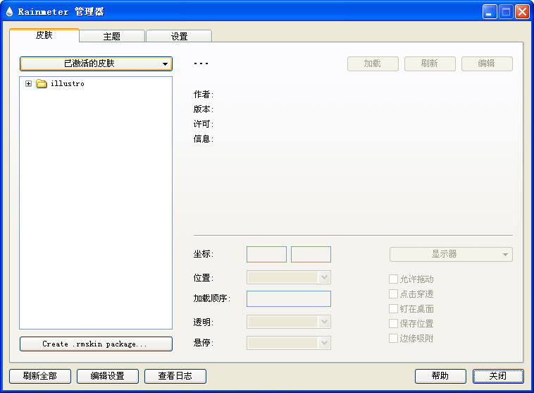 1、Rainmeter的安装和汉化:去官网下载最新版。在安装的时候选择简体中文、选择标准安装。勾选开机启动。初次安装运行Rainmeter的用户如果不喜欢软件自带的黑框皮肤、可以在皮肤上,右键-关闭皮肤。
