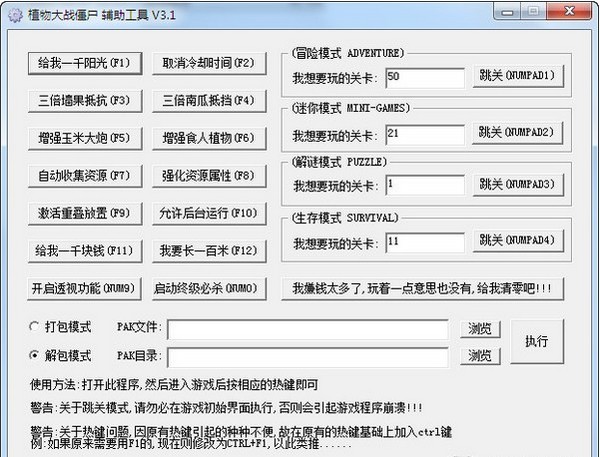 1.以植物大战僵尸修改器v3.1为例,首先要做的就是下载修改器和游戏资源的下载安装
