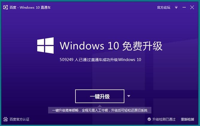 百度win10直通车是由百度官方打造的windows10操作系统升级工具。百度与微软深度合作,为任何想要升级win10系统的用户提供一键式升级服务。百度win10直通车可以自动智能检测当前电脑是否符合升级要求,当电脑通过检测后即可选择直接升级,升级全程无需守候。让升级windows10更简单,更快速,更安全。