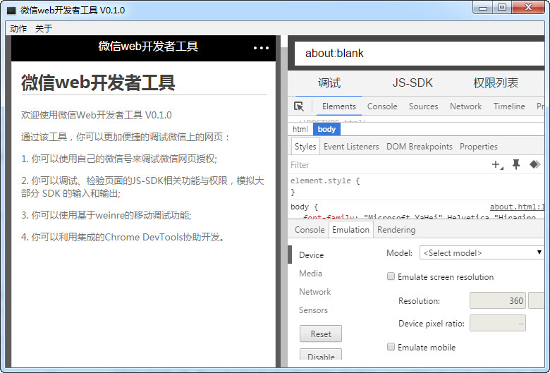 通过模拟微信客户端的表现,帮助开发者进行开发和调试