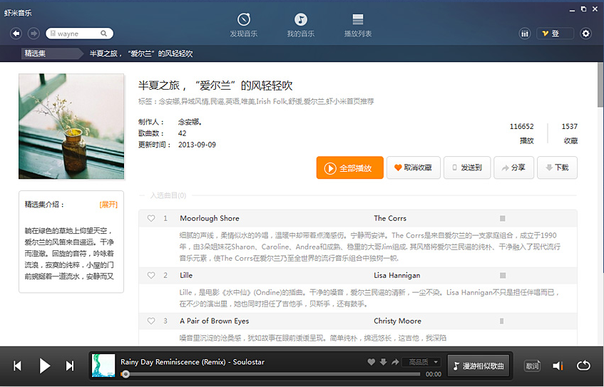 3、最自由的听歌体验,500多万张由音乐达人制作的绝赞精选集,满足千奇百怪的听歌爱好;