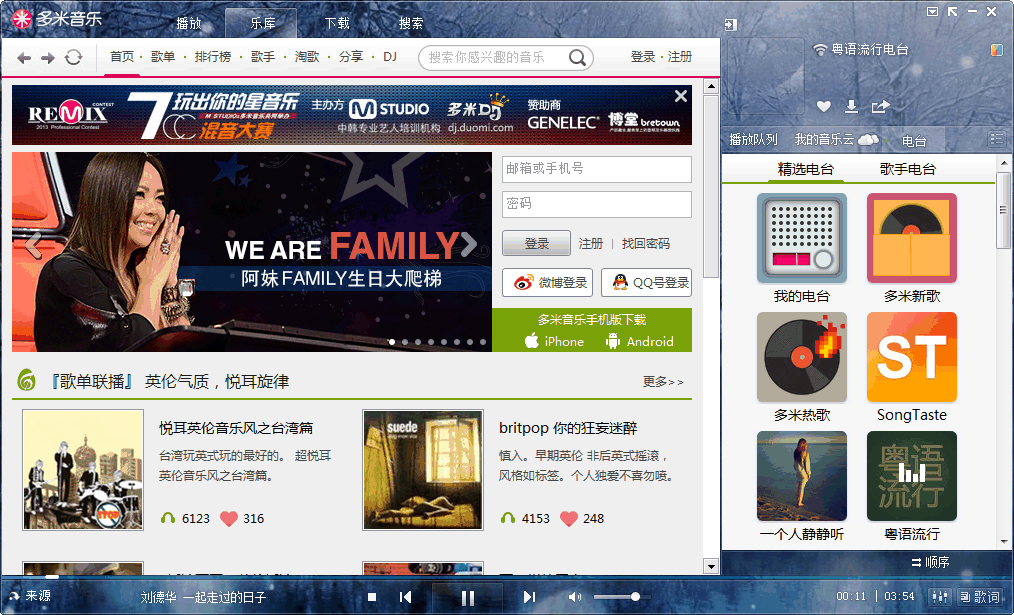 多米音乐的亮点在于它丰富多样的乐库歌曲菜单、电台、淘歌专辑,能满足各种音乐口味的人群需求。