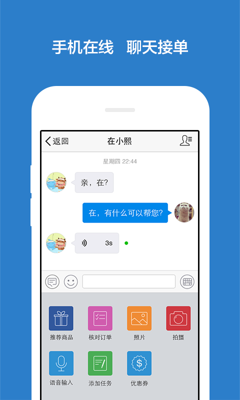 3.阿里旺旺卖家版:支持手机和电脑同时登陆,联系人、聊天记录和快捷短语与电脑无缝云同步,可添加好友,查看买家个人主页